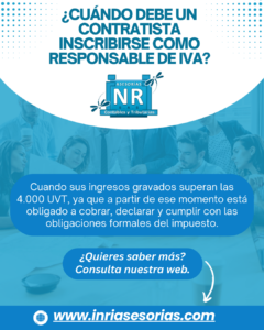 Cuando un contratista supera el tope de 4.000 UVT en ingresos gravados, está obligado a inscribirse como responsable del Impuesto sobre las Ventas (IVA) ante la autoridad tributaria.